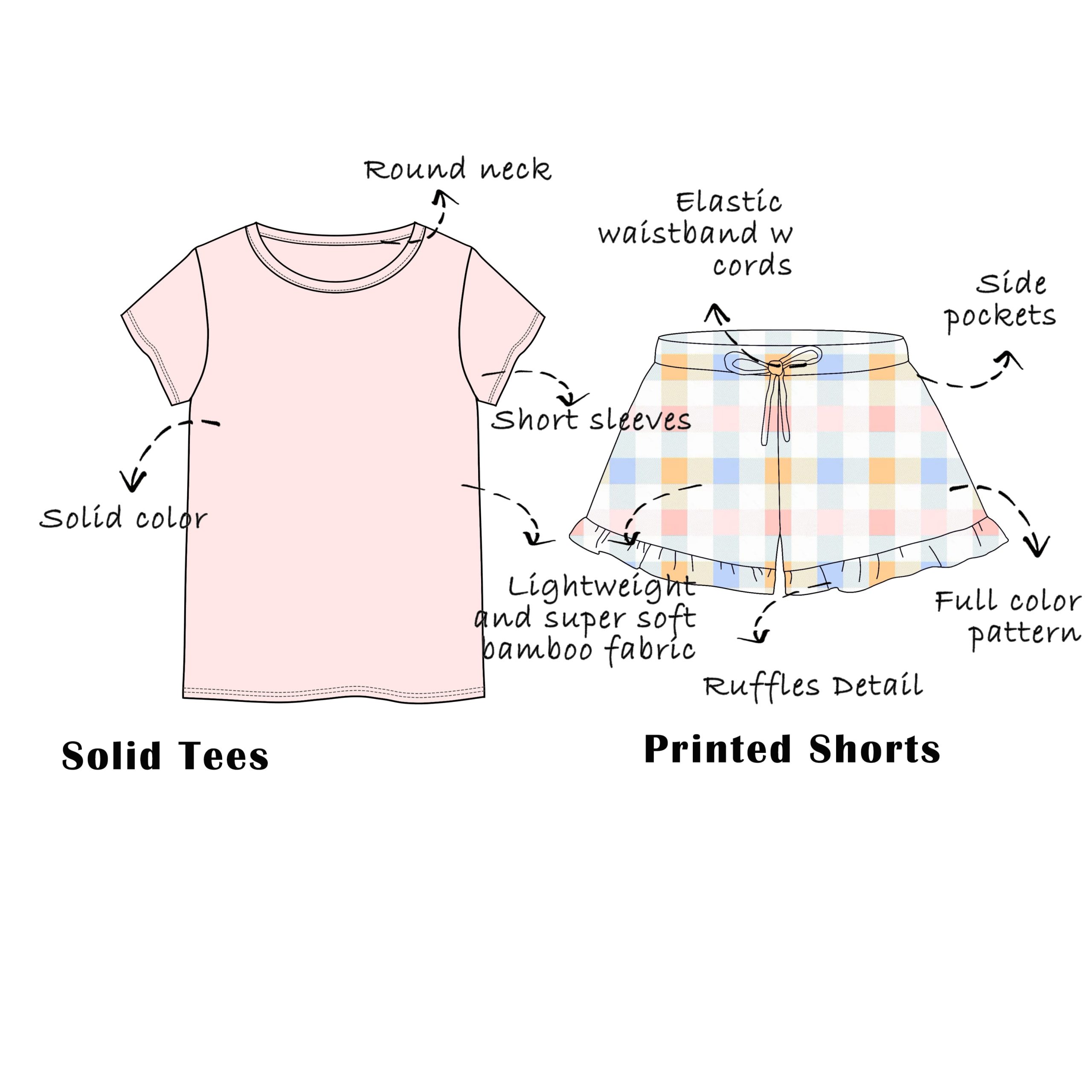 Custom Bamboo Viscose Adult 2 Piece Set Solid Tees Printed Ruffle Shorts